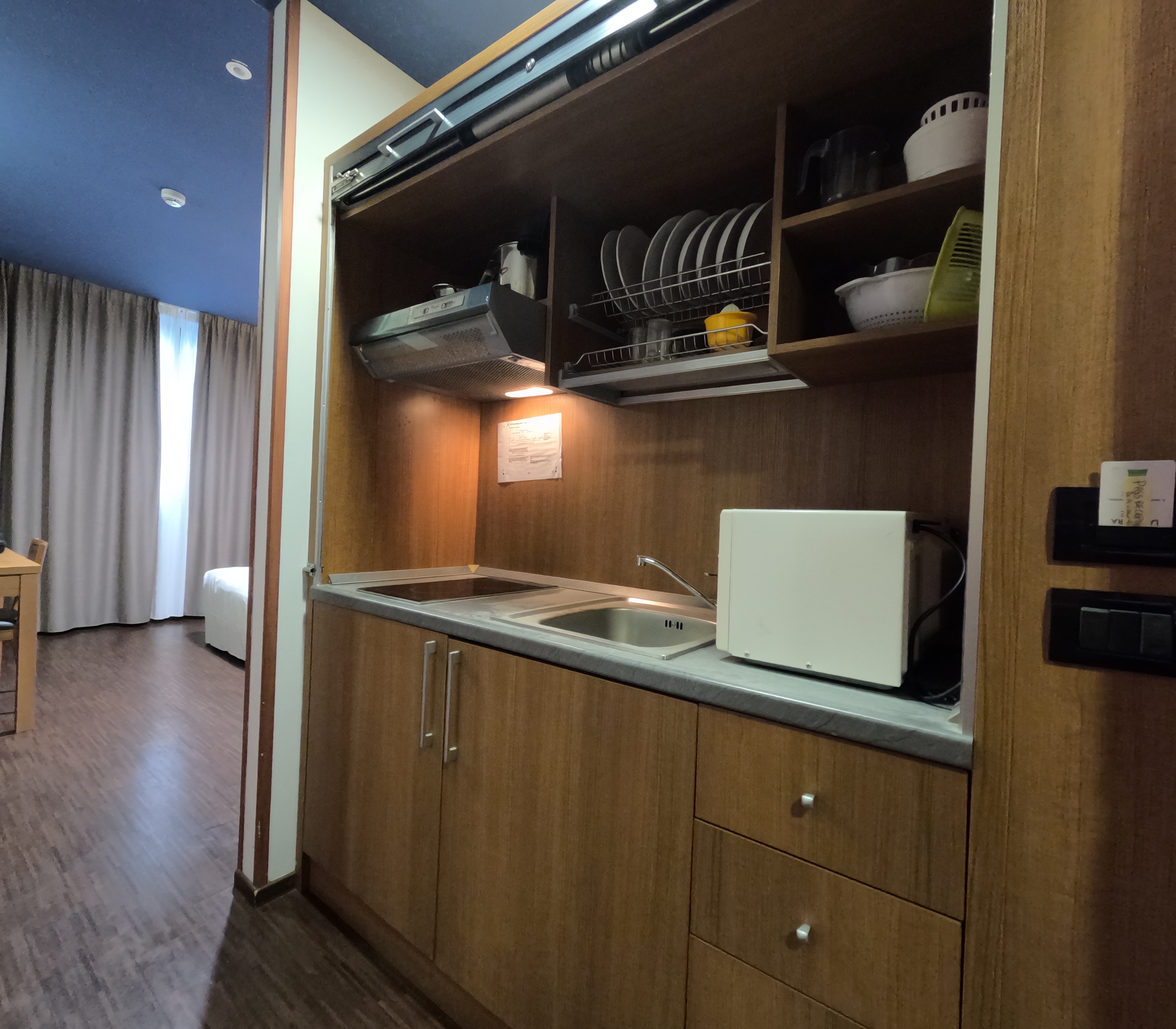 Su richiesta, e con un piccolo supplemento, è possibile aprire e utilizzare l’angolo cottura, rendendo l’esperienza ancora più versatile e personalizzata. Una soluzione ideale per chi vuole sentirsi a casa anche lontano da casa.